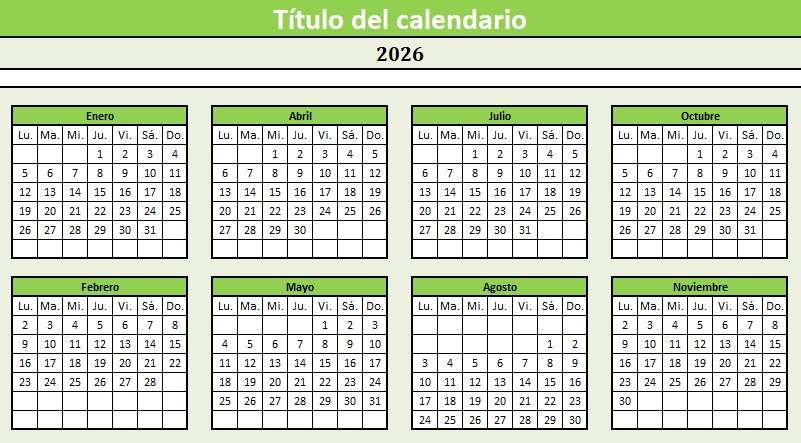 Calendario 2026 verde